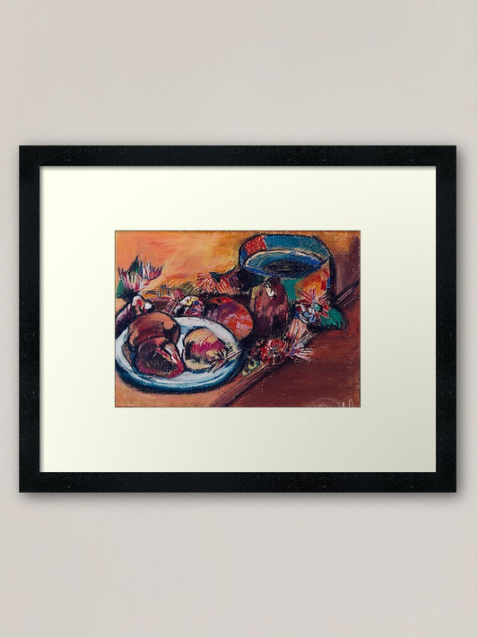 Oil Pastel 8” x 6.5” Pomegranates in bowl