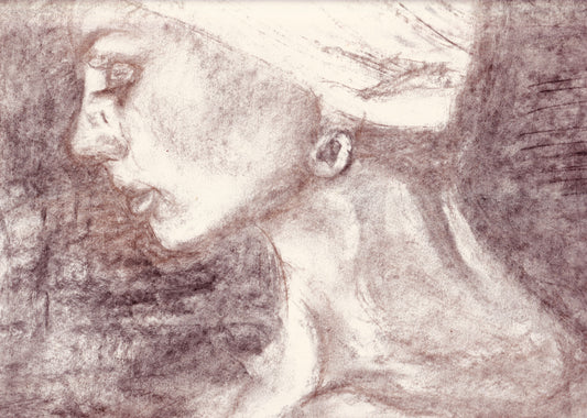 Charcoal, Hard Pastel - 5” x 3.5” Portrait Drawing - Indian Grandmother